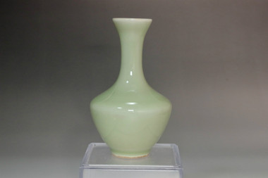 This single-flower vase is a beautiful piece characterized by its elegant curves and pale jade-colored glaze. The smooth surface and perfect shape speak of the craftsman's exceptional skill. By placing a single flower in it, it brings a refined and serene atmosphere to the entire space.