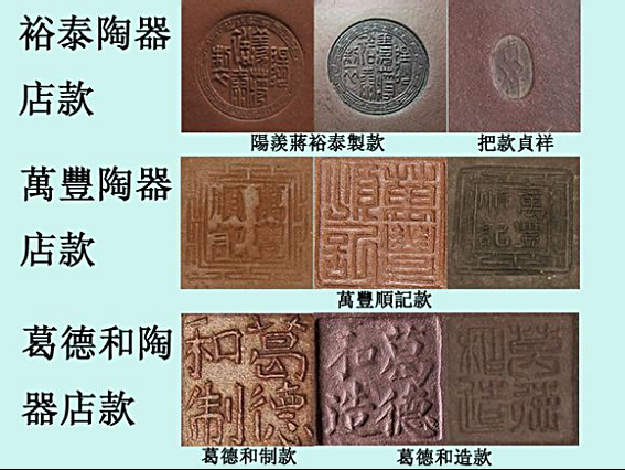 The Yutai Pottery Shop was founded in the Guangxu period of the Qing dynasty. The owner was Jiang Zhenxiang (蔣貞祥), mainly dealing in purple sand pottery. The tea pots made to order were inscribed with the name of Jiang Zhenxiang, with the seal seal '陽羨蔣裕泰制' on the bottom and the oval round seal '裕泰' on the lid. Jiang Zhenxiang also produced tea pots and used the seal '蔣貞祥'.