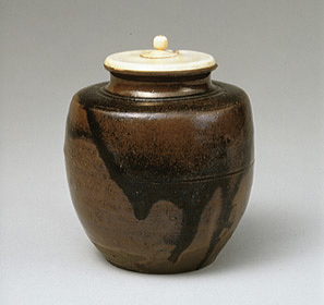 A katatsuki-style tea container imported from China. One of the three most famous katatsuki-style containers. Said to have been one of Yang Guifei's oil jars. Named "hatsuhana (the first flower of the season, or a girl who has just flowered into womanhood)" for its elegance by Ashikaga Yoshimasa. Oda Nobunaga acquired it from the merchants at Daimonjiya for its fame, but lost it in the Honnoji Incident, after which it came to be owned by Toyotomi Hideyoshi. It was inherited by Ukita Hideie after his death, but following Hideie's defeat at the Battle of Sekigahara, it passed into Tokugawa Ieyasu's hands.