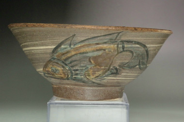 Born in Naha. Began working with ceramics at the age of 13, studying under Hamada Shoji. Later apprenticed at a kiln-equipped shop that produced ceramics typically representative of Okinawa. Went independent in 1972. Certified as a prefectural intangible cultural technology property holder for Okinawan ceramics. Recipient of the Okinawa Times Art Award, Japan Folk Art Museum Award, Kokugakai Exhibition Excellence Award, Modern Master Craftsman Exhibition Labor Minister’s Award, many others. Permanent installation at the Romanian National Folk Art Museum. Exhibited at the Japan Ceramics Masters Exhibition. The Okinawa Crafts Exhibition (sponsored by the National Museum of Modern Art in Kyoto), and the Okinawa Prefecture Designated Intangible Cultural Properties and Crafts Exhibition. Solo exhibitions at Okayama Tenmaya, Matsuya Ginza, Seibu Ikebukuro, and others. Ryukyu pottery was designated a nationally-important intangible cultural property (national treasure), the first such designation in Okinawa. Primarily focused on painting atop engravings of fish and crustaceans.