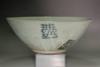 17C-18C Antique Large JOSEON Dynasty White Porcelain Bowl with Blue Double Happiness Motif #5157