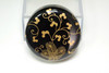 This is a fine lacquered natsume (tea caddy) crafted by Japanese lacquer artist Motooka Seisai. Set against a deep black lacquer ground, the piece is decorated with an elegant design of pine leaves and karakusa (arabesque) motifs in shimmering gold makie (sprinkled metal decoration). As a vessel used in the tea ceremony to hold powdered green tea, the artistic nature of this piece enhances the visual experience of the tea gathering. The glossy lacquer surface is flawlessly executed, and the gold design is arranged with balance and dignity, evoking a refined, tranquil mood. The lid and interior are fully lacquered, testifying to the high craftsmanship. The item is in excellent condition, with the original wooden box bearing the artist’s seal, confirming its provenance. This piece stands as a superb example of the fusion between traditional design and technical mastery, making it both a functional tea utensil and a collectible work of art.